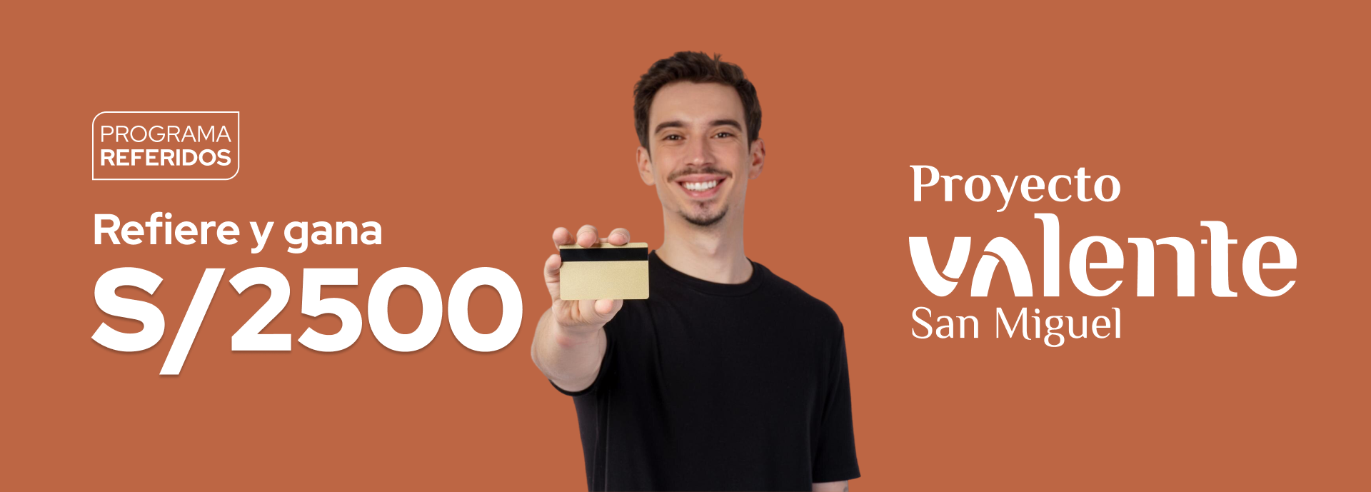 Si conoces a alguien que busca su próximo departamento, refiérelo a Proyecto Valente y recibe una Gift Card de S/2,500 cuando concrete la compra de su nuevo hogar.